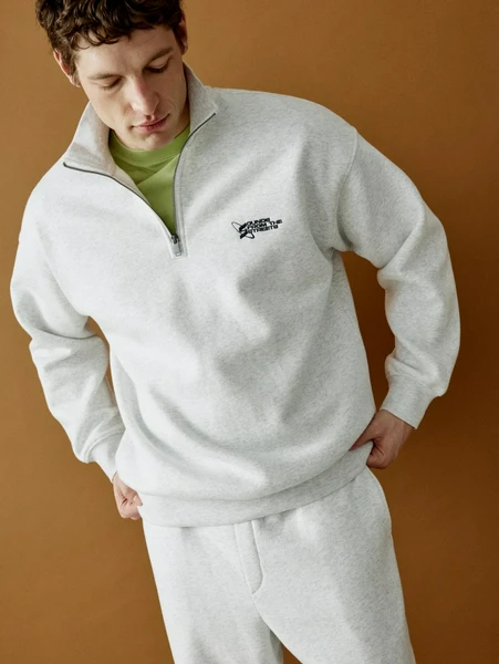 Свитшот имеет свободный крой оверсайз, который не стесняет движений и прекрасно сидит на любой фигуре. Особенностью модели является стильный воротник на молнии, позволяющий регулировать степень открытости и адаптироваться к погодным условиям. Серый меланжевый цвет легко вписывается в любой образ, делая свитшот идеальным выбором для: