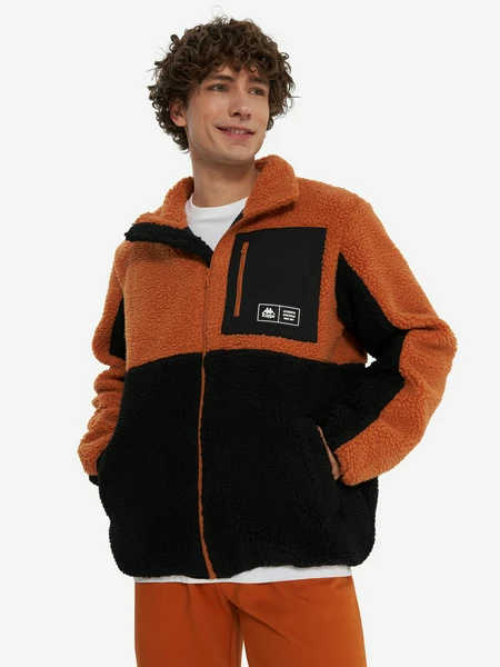 Дизайн толстовки выполнен в модном сочетании коричневого и черного цветов, придавая ей универсальность и легкость в комбинировании с другими элементами гардероба. Прямой покрой гарантирует свободу движений, а застежка на молнию по всей длине позволяет легко регулировать температуру и надевать или снимать толстовку.