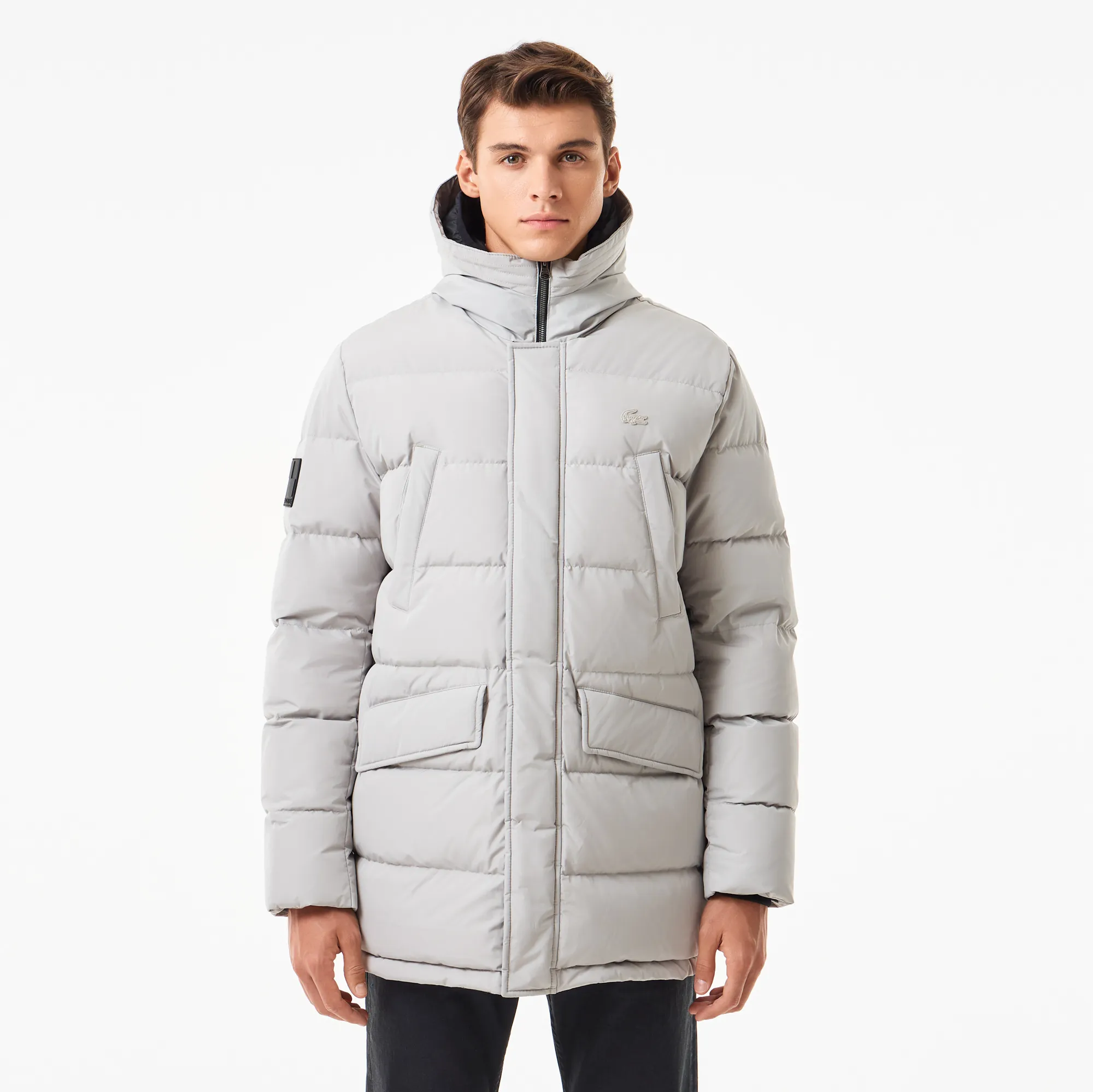 Мужская удлинённая куртка Lacoste с капюшоном, серый, арт. bh2308
