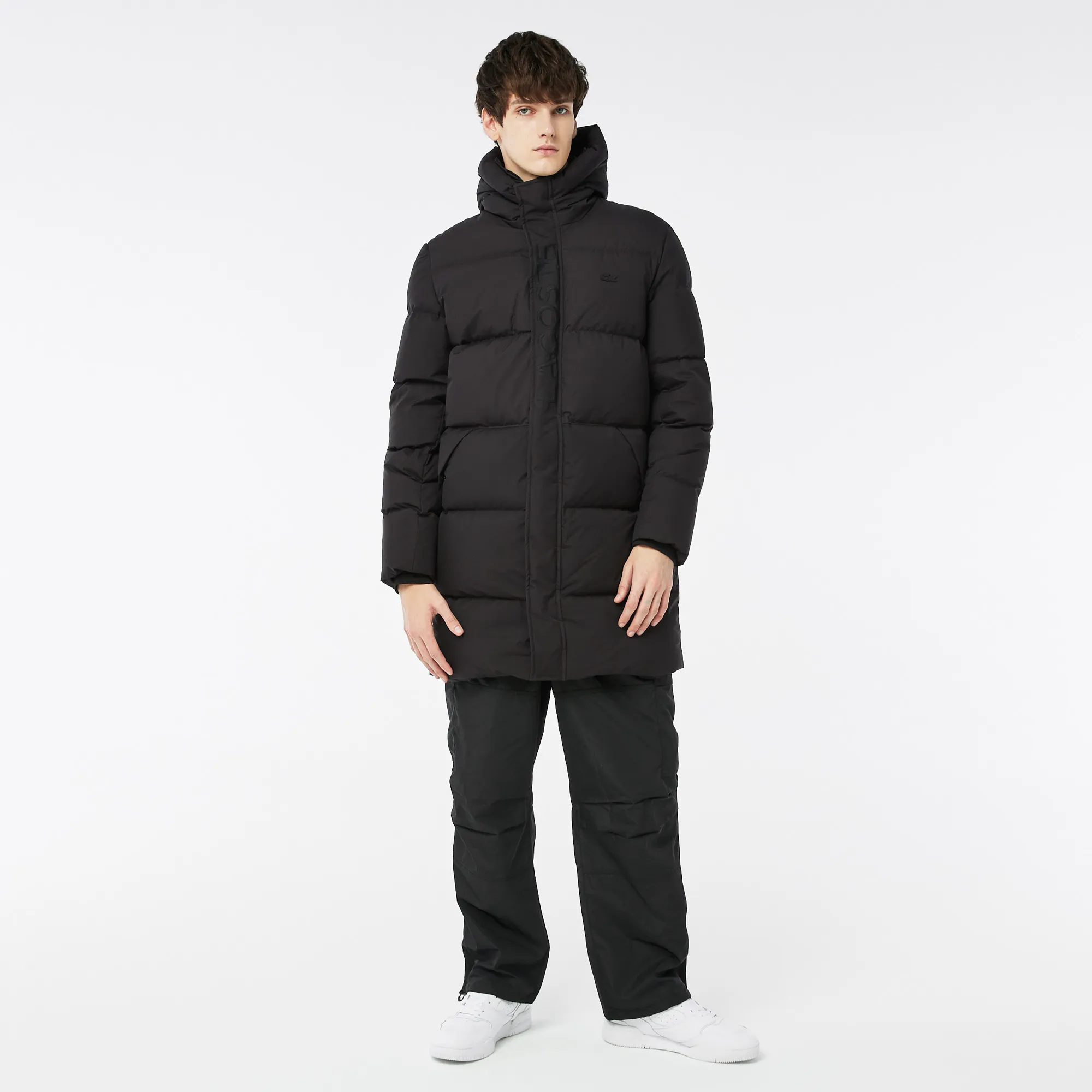 Мужская утеплённая куртка Lacoste с капюшоном, черный, арт. bh2426