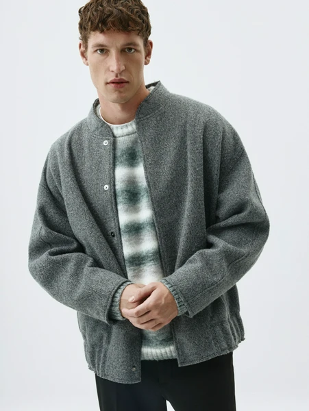🍂 Представляем мужской бомбер оверсайз от SELA – идеальное решение для вашего демисезонного гардероба. Этот стильный бомбер выполнен из высококачественной пальтовой ткани глубокого серого цвета, которая не только выглядит эстетично, но и обеспечивает комфорт в прохладную погоду.