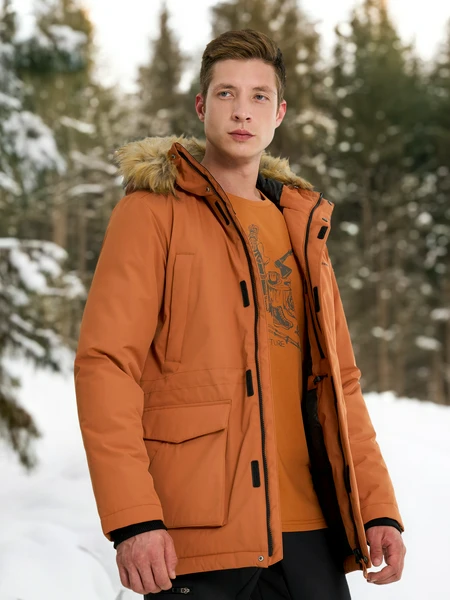 - Практичность: Модель оснащена удобным несъемным капюшоном для дополнительной защиты головы и съемной опушкой, что позволяет адаптировать внешний вид.