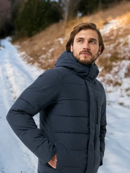 - Практичный дизайн: Зауженный покрой обеспечивает стильный внешний вид, а не отстегивающийся капюшон дополнительно защищает от непогоды.