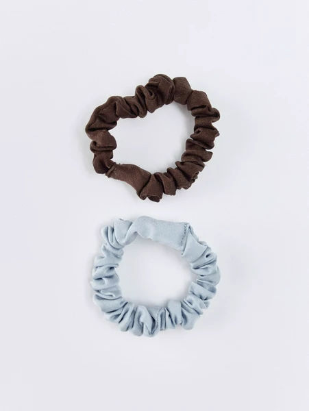 В наборе вы найдете две резинки: одна выполнена в классическом коричневом цвете, что делает ее универсальной для любого образа, добавляя тепла. Вторая резинка представлена в нежном голубом оттенке, который придает образу свежести и легкости. Оба аксессуара изготовлены из высококачественного материала, обеспечивающего деликатный уход за вашими волосами. Они надежно фиксируют пряди, не стягивая кожу головы и не оставляя неприятных заломов, сохраняя здоровье и красоту ваших волос.
