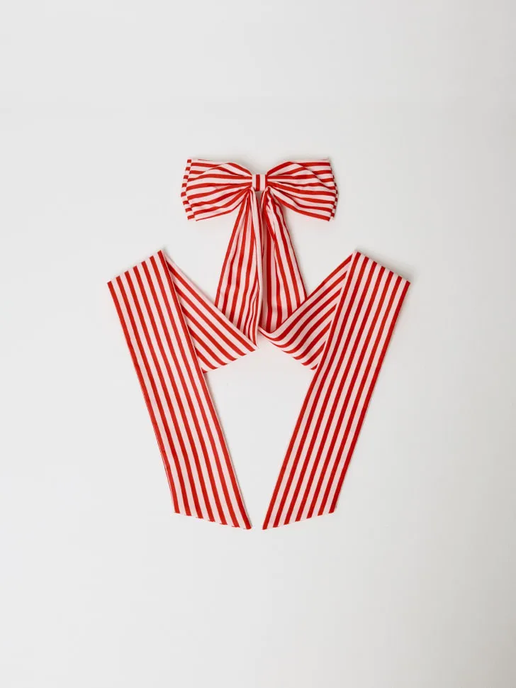 Придайте своему образу особую элегантность с нашей изысканной заколкой для волос с бантом в полоску! Этот стильный аксессуар станет идеальным дополнением как к повседневному, так и к праздничному наряду, безупречно подчеркивая вашу женственность и неповторимый стиль. Изготовленная из высококачественных и долговечных материалов, наша заколка надежно фиксирует пряди любой толщины, обеспечивая исключительный комфорт и абсолютную уверенность в течение всего дня. Легкая и практичная, она не утяжеляет волосы и идеально подходит для создания множества разнообразных причесок – от романтичных, нежных локонов до строгих и элегантных пучков. Классический полосатый принт всегда остается на пике моды и добавляет нотку утонченной изящности вашему образу.