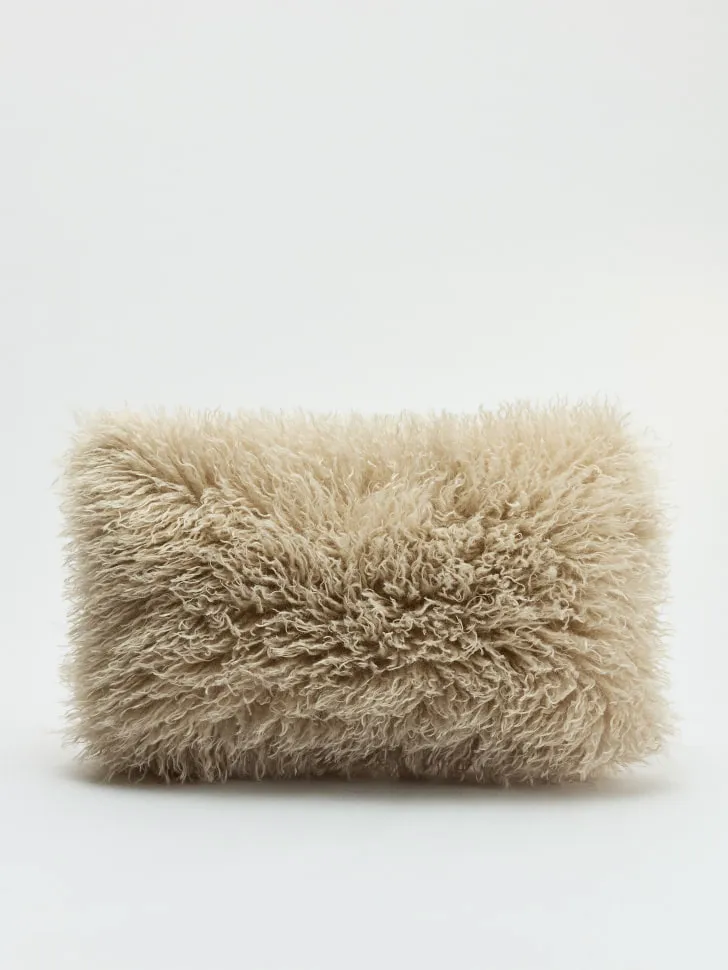 Чехол для декоративной подушки из искусственного меха, бежевый, арт. 16731