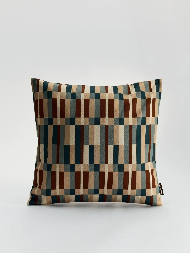 Откройте для себя идеальный способ обновить ваш интерьер с нашим чехлом для декоративной подушки из высококачественного хлопка. Этот аксессуар не просто добавит уюта, но и станет ярким акцентом в любой комнате. Благодаря уникальному геометрическому принту в современных оттенках бежевого, коричневого и сине-зеленого, он легко впишется как в классический, так и в более современный дизайн.