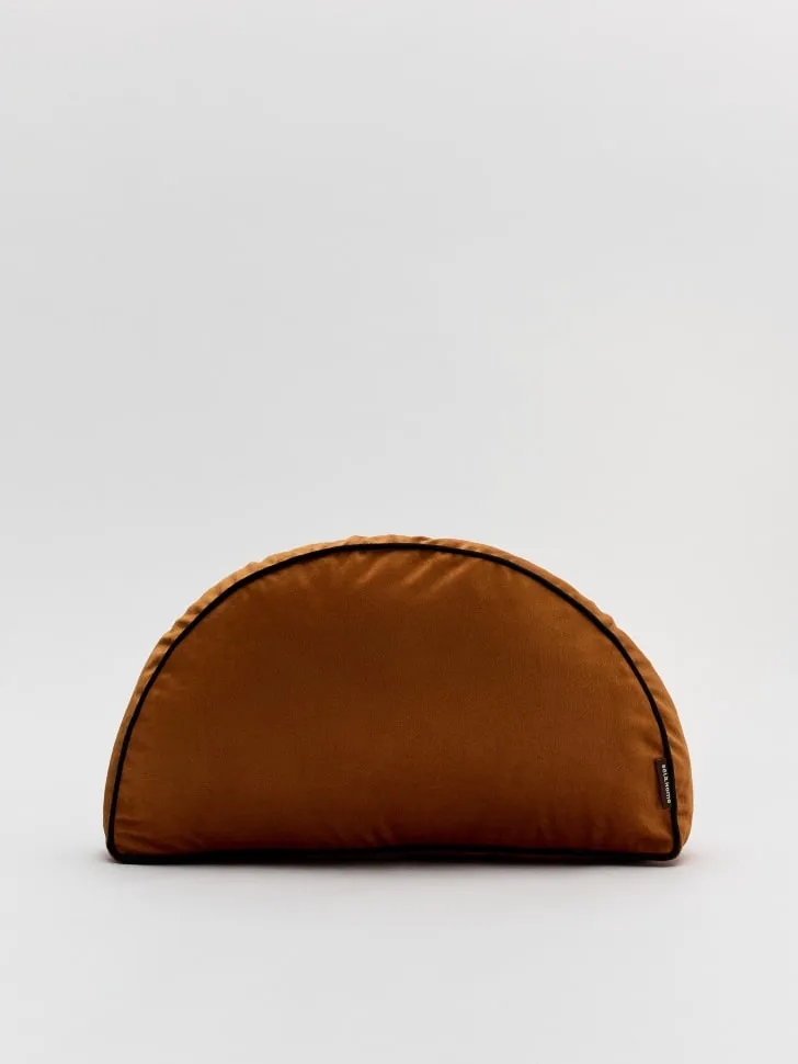 Представляем вашему вниманию декоративную подушку, которая преобразит любой интерьер и наполнит его теплом и уютом. Эта стильная подушка необычной полукруглой формы выполнена в глубоком карамельном цвете, дополненном элегантным черным кантом, что придает ей особую изысканность. Она станет великолепным акцентом на вашем диване, кресле или кровати, создавая гармоничное и завершенное пространство.