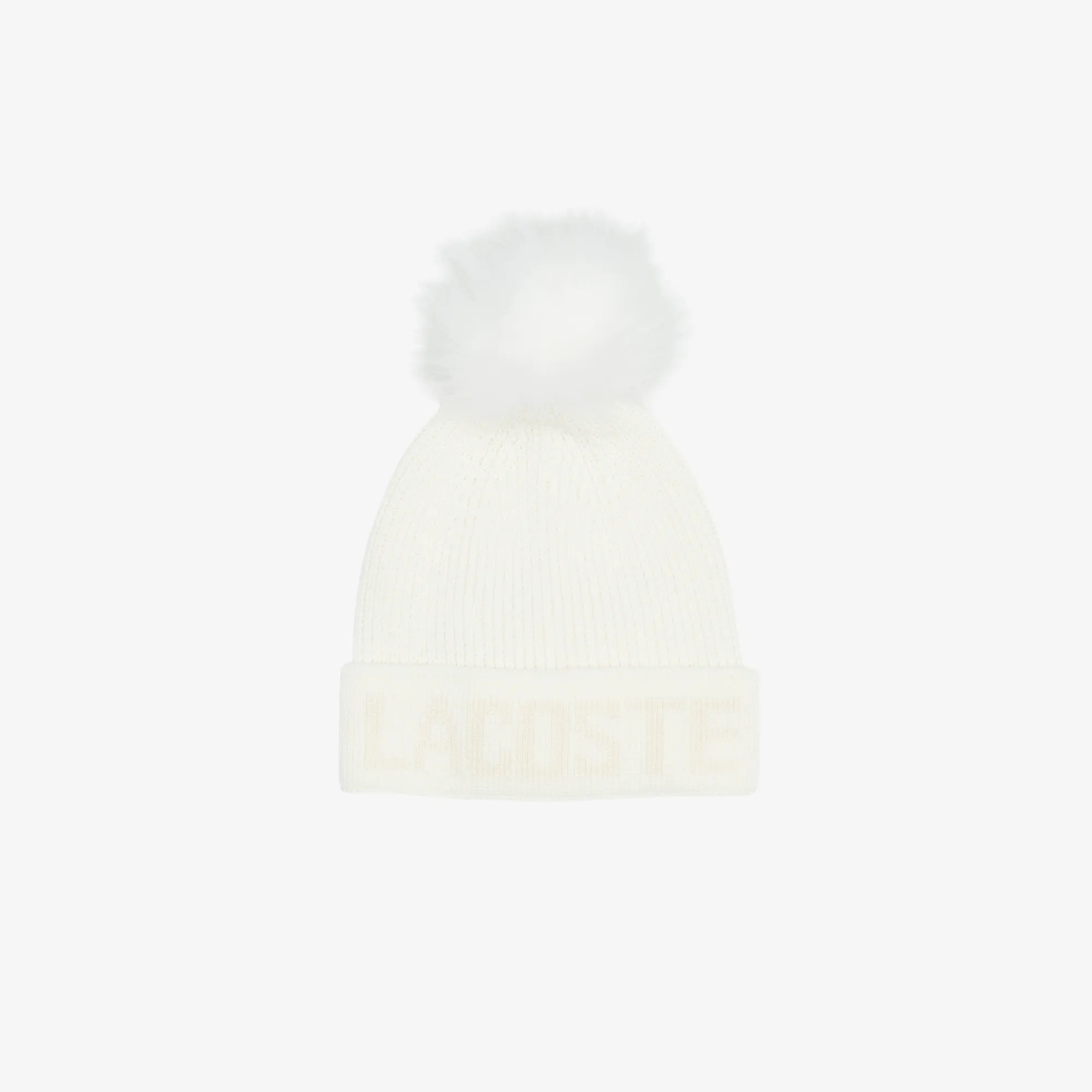 Хлопковая вязаная шапка Lacoste с помпоном, белый, арт. 11344