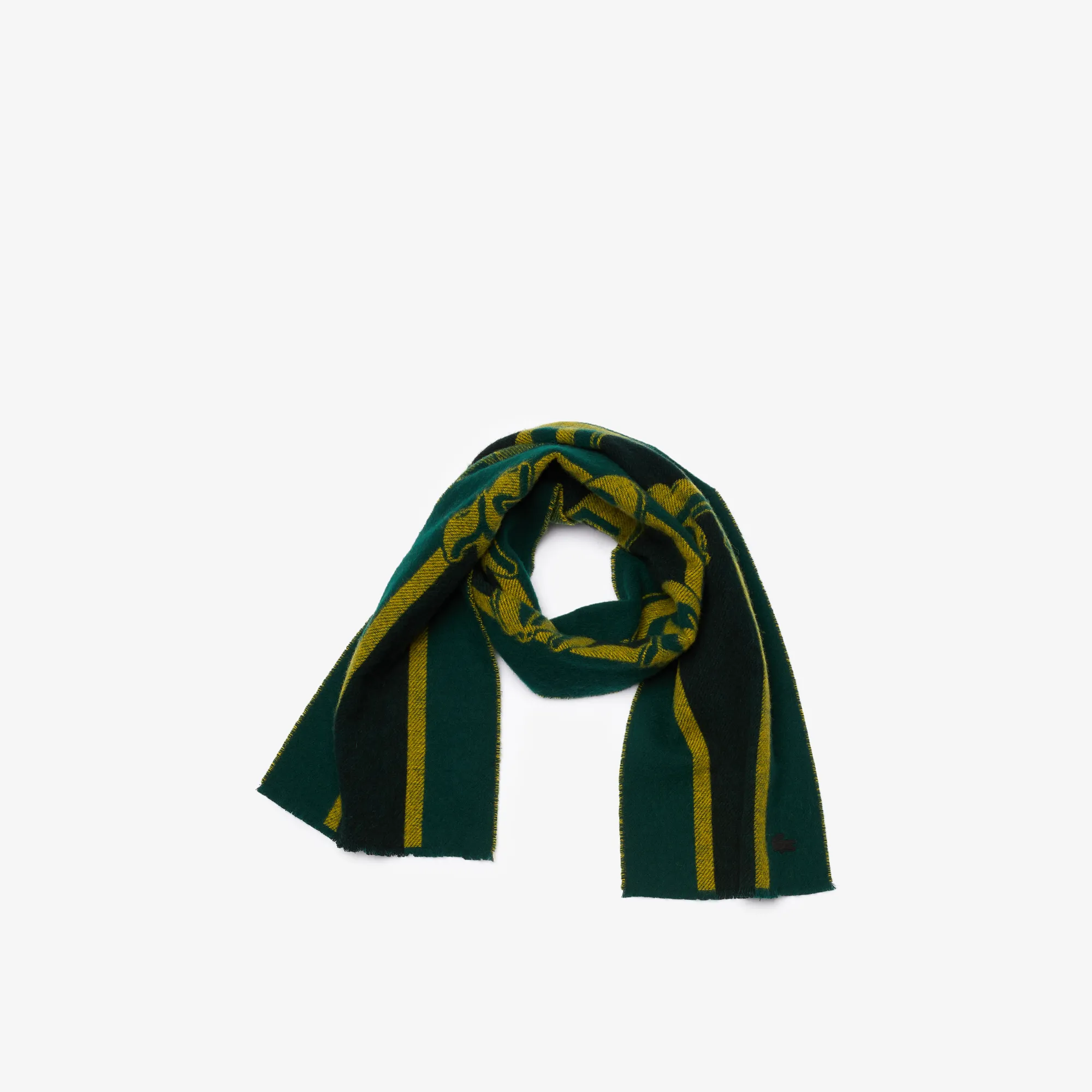 Полосатый шерстяной шарф Lacoste L!VE Unisex, зеленый, арт. RE6836