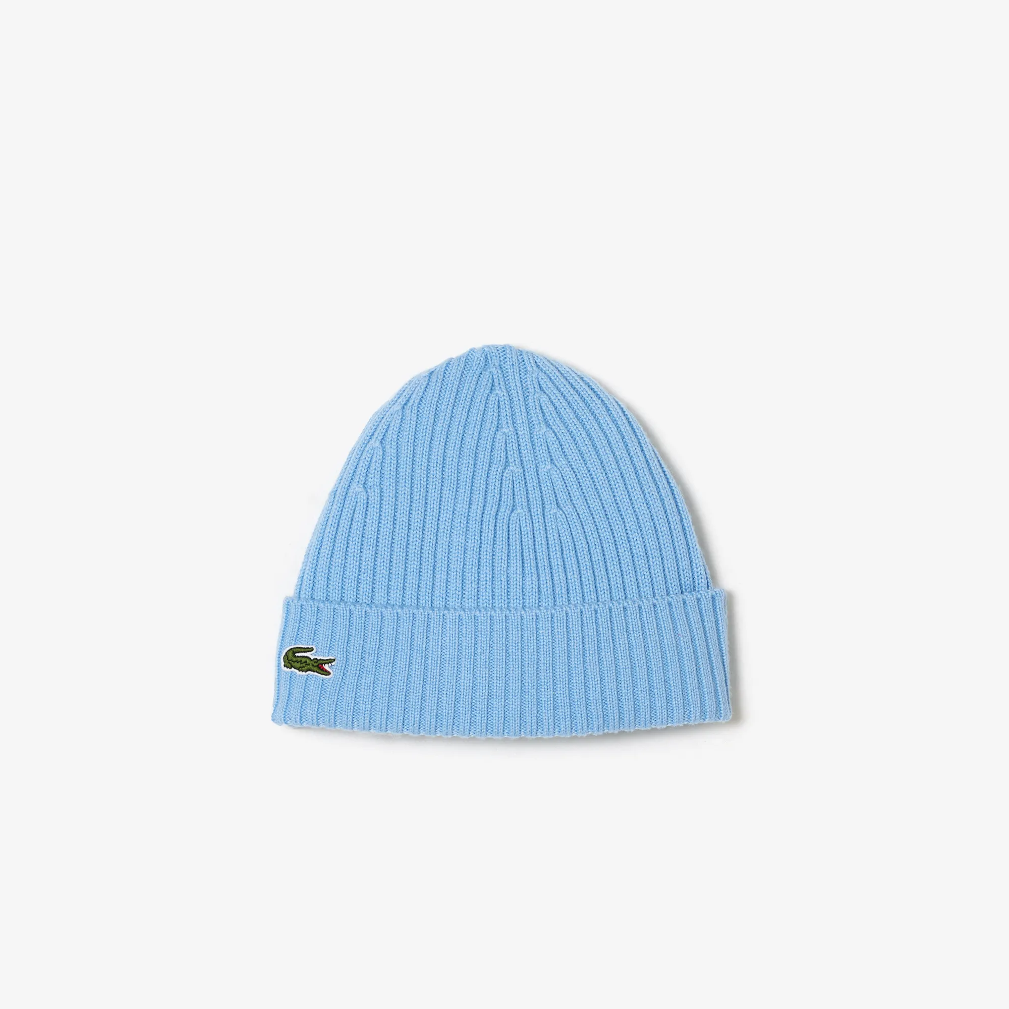 Шерстяная шапка Lacoste Unisex в рубчик, голубой, арт. rb0001
