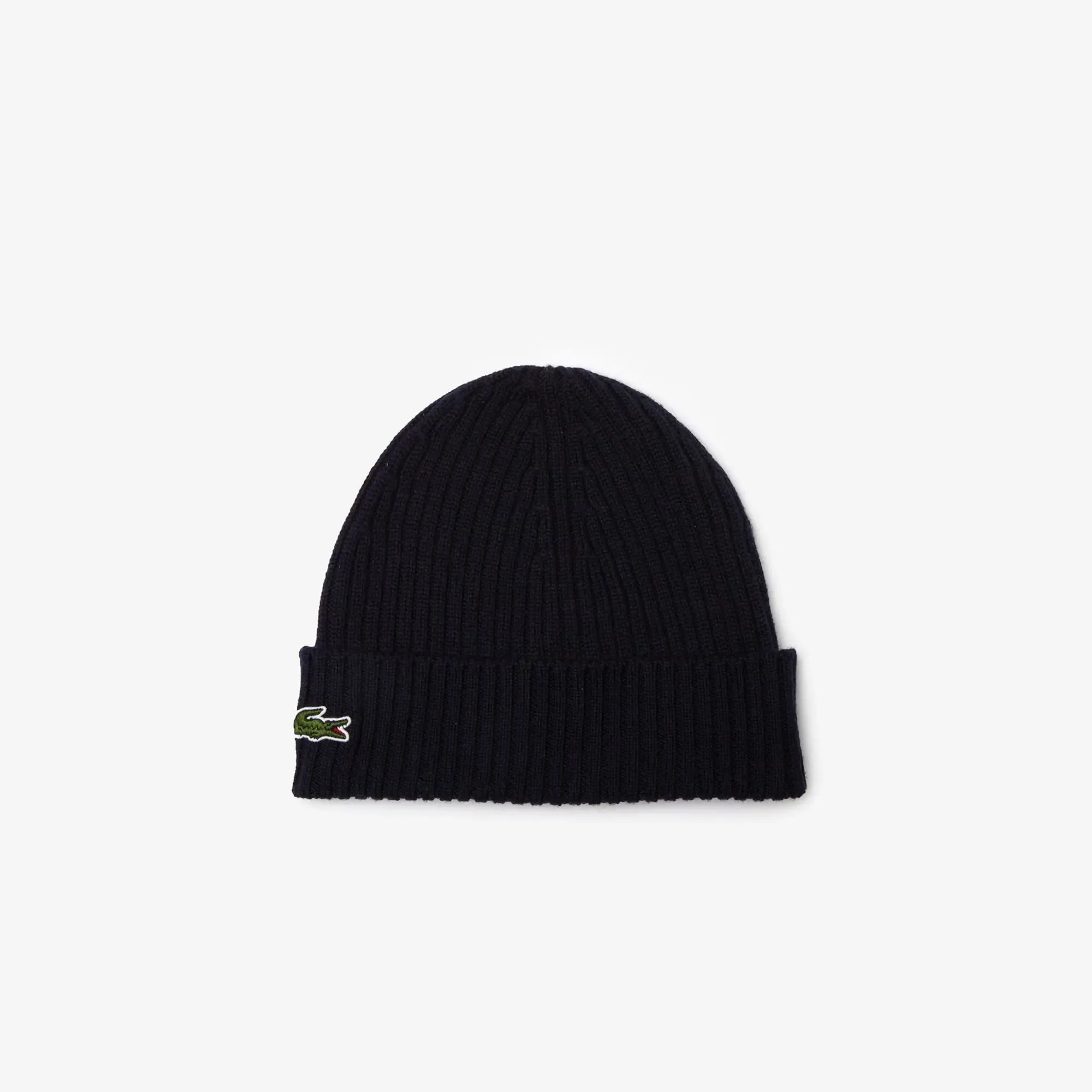 Шерстяная шапка Lacoste Unisex в рубчик, синий, арт. rb0001