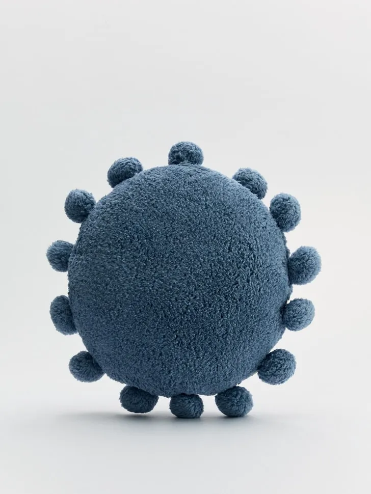 Круглая декоративная подушка с помпонами, синий, арт. 000