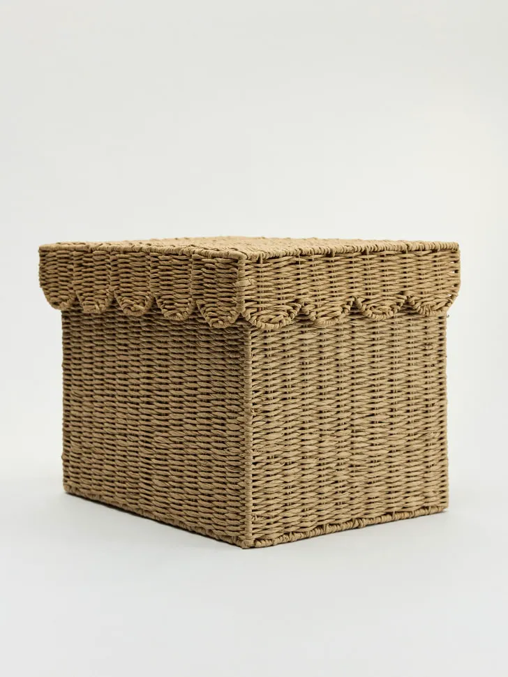 Благодаря плотной крышке, содержимое корзины будет надежно защищено от пыли и посторонних взглядов, что делает ее идеальной для хранения белья, игрушек, книг, рукоделия или любых других предметов, которые вы хотите скрыть от посторонних глаз. Изысканное плетение и аккуратная форма делают эту корзину не просто емкостью для хранения, но и полноценным элементом декора. Превратите процесс организации пространства в удовольствие с нашей плетеной корзиной, которая привнесет в ваш дом уют и гармонию.