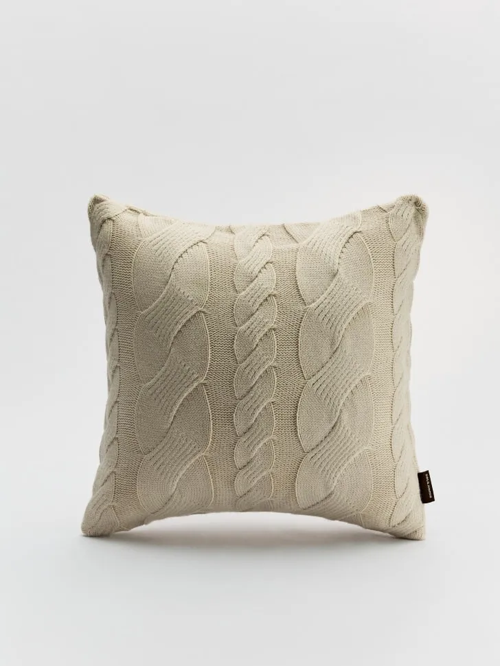 Вязаный чехол для декоративной подушки, бежевый, арт. art-dekor-001