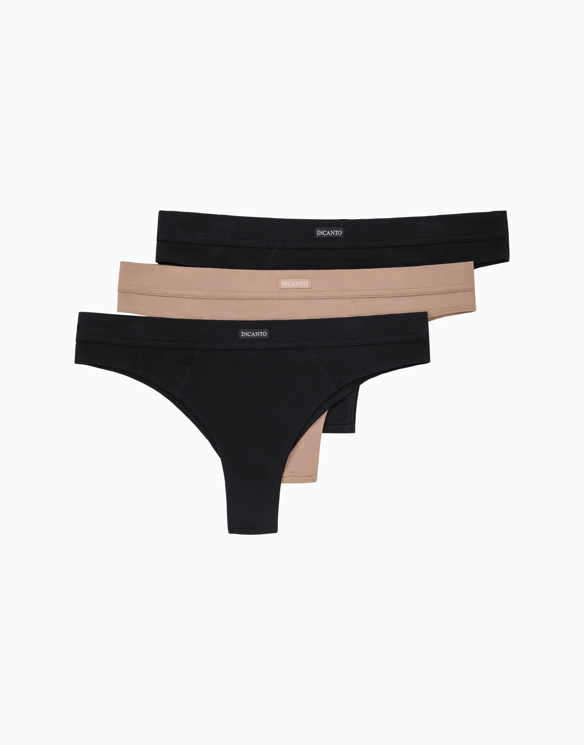 Откройте для себя совершенство комфорта и стиля с Набором из 3-х женских трусов бразилиано Incanto. Этот эксклюзивный комплект разработан для современных женщин, ценящих качество, удобство и элегантность в каждой детали своего образа. В набор входят три пары трусиков с универсальной средней посадкой: две модели классического черного цвета, которые станут идеальной базой для любого гардероба, и одна нежно-бежевая пара, незаменимая под светлую одежду. Такое сочетание цветов обеспечивает максимальную практичность и легкость в создании безупречного образа.