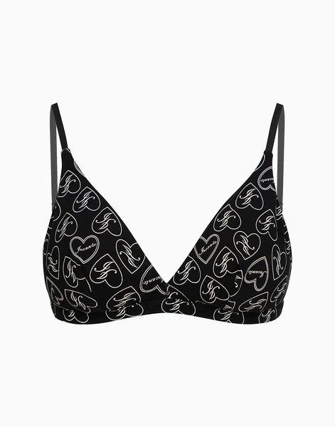 - Изысканный дизайн: Классический черный цвет дополнен игривым принтом в виде сердечек, что придает бюстгальтеру особый шарм.