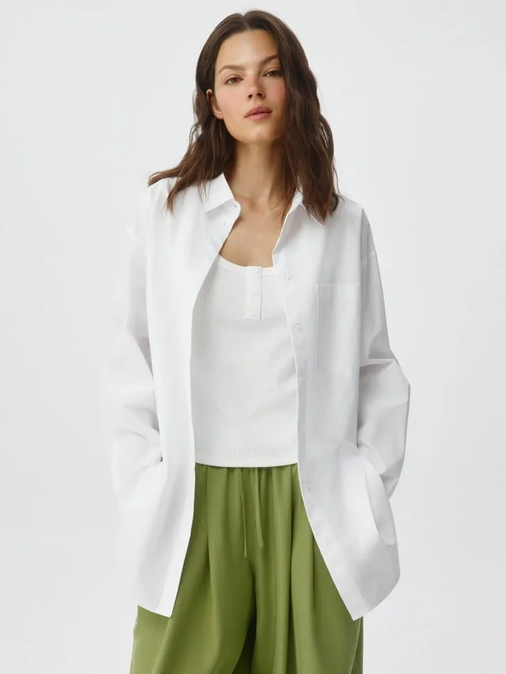Ее удлиненный крой позволяет носить ее как самостоятельный элемент гардероба, так и в качестве легкой накидки поверх топа или футболки. Свободный силуэт не стесняет движений и подходит для любой фигуры, подчеркивая вашу естественную красоту. Добавьте эту универсальную вещь в свой гардероб – она легко сочетается с джинсами, брюками или даже шортами, позволяя создавать разнообразные и стильные образы для офиса, прогулок или встреч с друзьями. Эта рубашка станет вашей любимицей благодаря своей практичности и непринужденному шику!