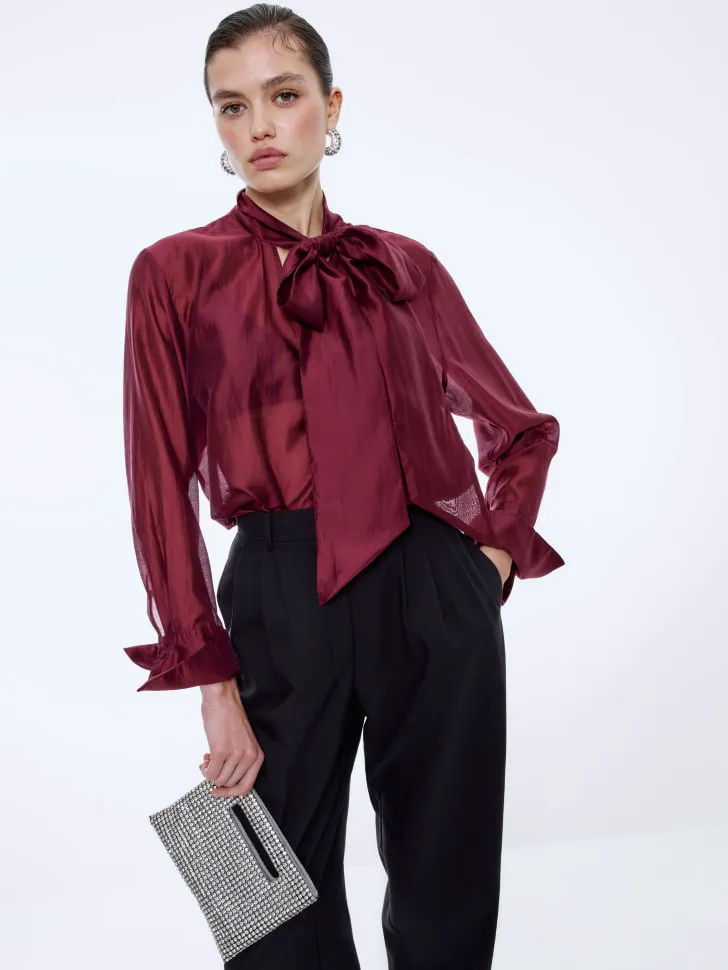 Полупрозрачная блузка с бантом, бордовый, арт. 15633