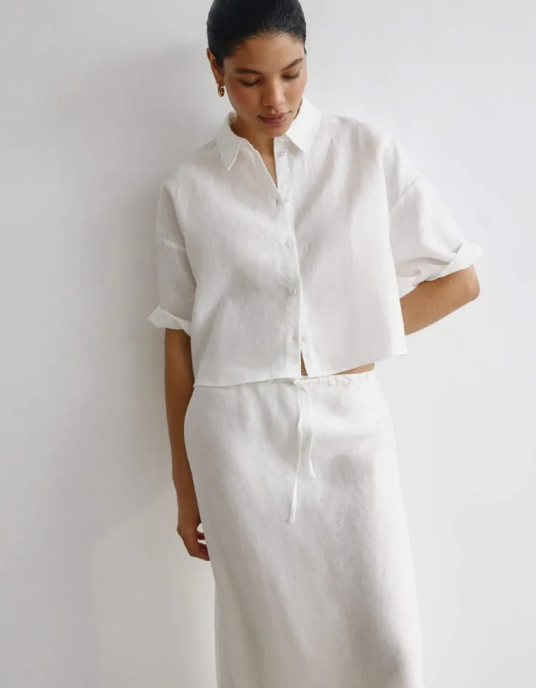 Укороченная льняная рубашка, белый, арт. A123
