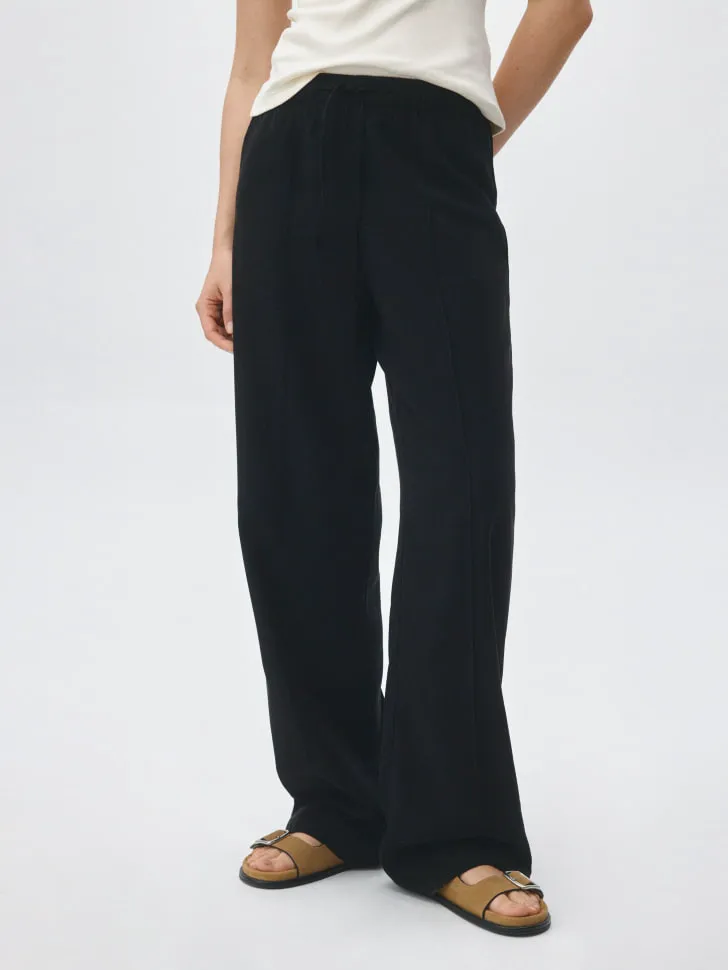 Откройте для себя идеальное сочетание стиля и комфорта с нашими брюками из смесовой вискозы. Это по-настоящему универсальный элемент гардероба, который призван дарить вам ощущение легкости и уверенности в любой ситуации. Благодаря тщательно подобранному составу, ткань обладает превосходными дышащими свойствами и необычайной мягкостью, что делает эти брюки незаменимыми как для офисных будней, так и для непринужденных прогулок. Они не сковывают движений и прекрасно адаптируются к вашему ритму жизни, обеспечивая комфорт с утра до вечера.