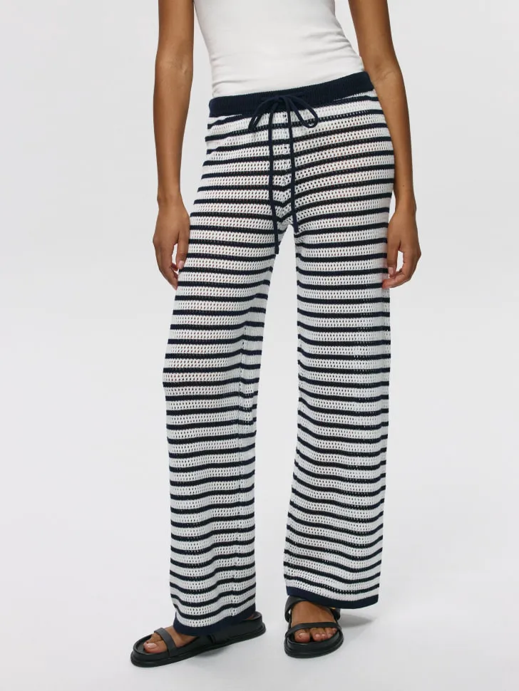 Представляем идеальное дополнение для вашего летнего гардероба – стильные брюки кроше в модную полоску! Эти легкие и воздушные брюки созданы для максимального комфорта в жаркие дни. Свободный крой и ажурная вязка обеспечат прохладу и свободу движений, позволяя вашей коже дышать. Трендовый полосатый узор, вдохновленный морским стилем, добавит вашему образу непринужденного шика и свежести.