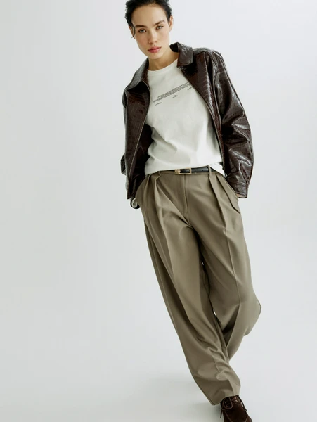 БрюкиПредставляем классические брюки со стрелками от SELA – идеальный выбор для современной женщины, ценящей элегантность и комфорт. Эти брюки, выполненные в актуальном оливковом цвете, станут универсальной основой вашего гардероба. Их безупречный крой со стрелками визуально удлиняет силуэт и придает образу особую утонченность, делая их подходящими как для строгих деловых встреч, так и для создания стильных повседневных комплектов.