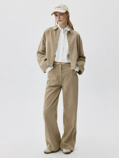- Трендовый широкий крой: актуальный силуэт, который визуально удлиняет ноги и придает образу расслабленный шик.
