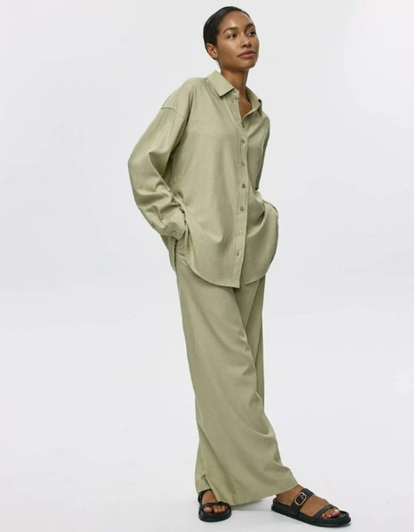 Брюки SELA широкие из вискозы и льна, хаки, арт. 34020