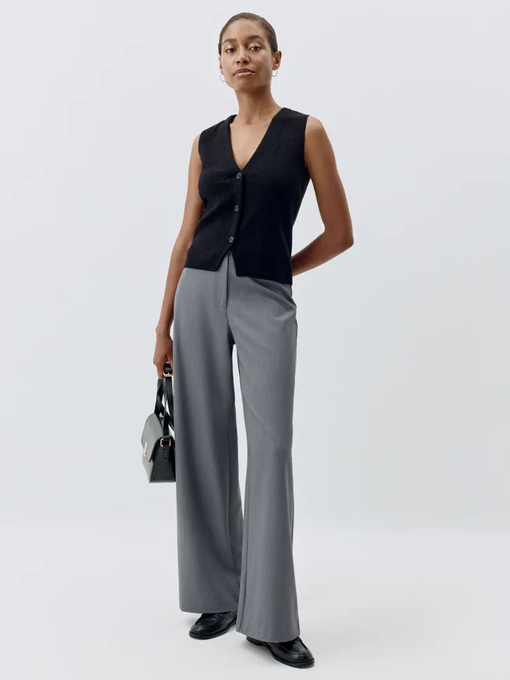 Классический прямой крой визуально удлиняет силуэт, а универсальный серый цвет позволяет легко комбинировать их с различными элементами одежды и аксессуарами. Будь то важная деловая встреча или вечерний выход, в этих брюках вы всегда будете выглядеть стильно и уверенно. Добавьте изысканности в свой повседневный образ с нашей новой коллекцией!