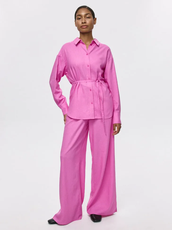Добро пожаловать в мир безупречного стиля и невероятного комфорта с нашими широкими брюками из смесового льна! 🌿 Эти брюки – воплощение легкости и элегантности, созданные для того, чтобы дарить вам ощущение свежести и свободы на протяжении всего дня. Идеальное решение для теплого сезона, они выполнены из высококачественного смесового льна, который обеспечивает отличную воздухопроницаемость и приятен к телу. Забудьте о дискомфорте – свободный, струящийся крой гарантирует максимальную непринужденность в каждом движении.