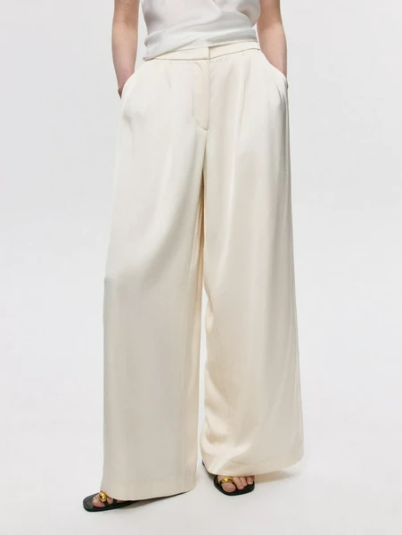 БрюкиОткройте для себя идеальное сочетание стиля и комфорта с широкими брюками из плотного сатина от SELA! Эти изысканные брюки молочного цвета станут незаменимой частью вашего гардероба, предлагая бесконечные возможности для создания элегантных и современных образов. Их свободный крой и струящаяся ткань обеспечивают невероятный комфорт и легкость движений, делая их идеальными как для динамичных будней, так и для торжественных мероприятий.