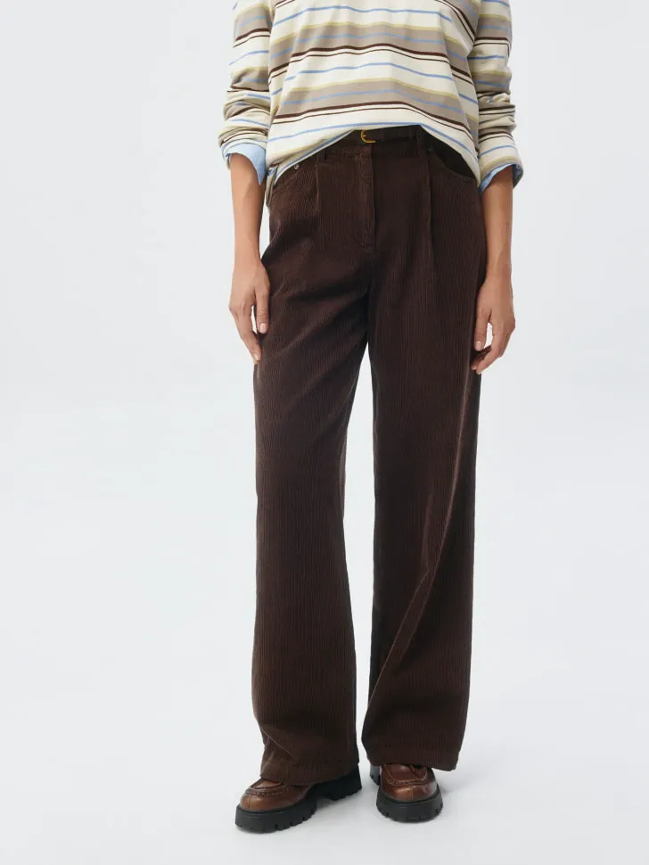 Представляем идеальное дополнение к вашему осенне-зимнему гардеробу – широкие вельветовые брюки! Эти брюки выполнены из мягкого и приятного к телу вельвета, который подарит вам непередаваемый комфорт на протяжении всего дня. Благодаря свободному крою они не стесняют движений и отлично подходят для создания расслабленных, но стильных образов.