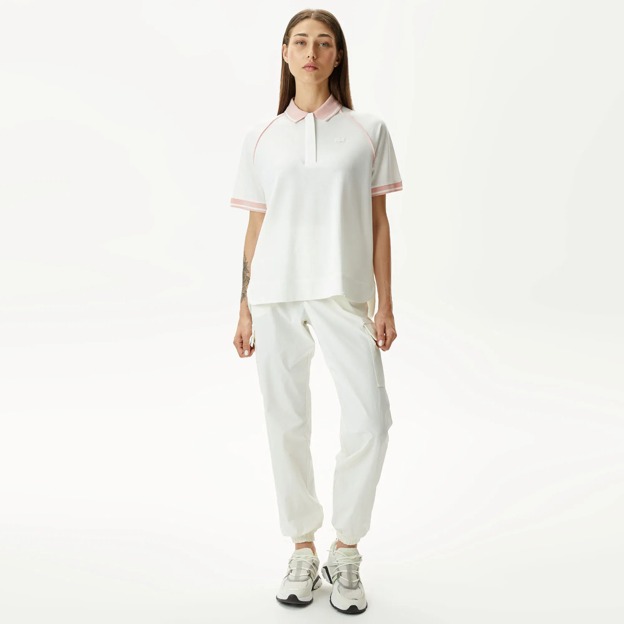 Особое внимание уделено качеству материалов: мягкая, дышащая ткань обеспечивает приятное прикосновение к коже и сохраняет форму даже после многочисленных стирок. Эластичный пояс на регулируемом шнурке гарантирует идеальную посадку по фигуре, а удобные манжеты внизу брючин добавляют спортивного шика. Фирменный логотип Lacoste, вышитый с ювелирной точностью, подтверждает подлинность и высокое качество изделия, делая эти джоггеры узнаваемыми и желанными. Легко сочетайте их с любимыми свитшотами, топами или худи, создавая стильные и непринужденные образы. Эти белые джоггеры Lacoste – это инвестиция в ваш комфорт и безупречный вид на каждый день.