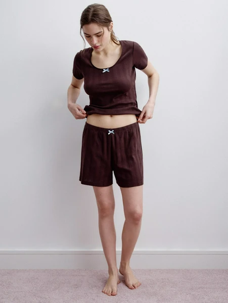 Женские домашние шорты SELA с рельефным узором, коричневый, арт. 33740