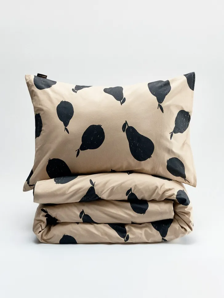 Насладитесь мягкостью и приятными тактильными ощущениями от ткани, которая обеспечит вам глубокий и восстанавливающий сон. Дизайн комплекта выделяется своим современным и оригинальным узором – стильные черные груши на теплом бежевом фоне. Этот рисунок добавит уют и особый шарм в вашу спальню. Комплект отличается высокой износостойкостью и легкостью в уходе, сохраняя яркость цвета и форму даже после многочисленных стирок. Создайте идеальную атмосферу для отдыха и релаксации.