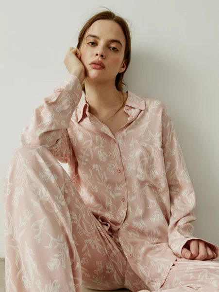 Дизайн рубашки отличает очаровательный цветочный принт на нежно-розовом фоне, который добавит романтики и легкости вашему образу. Свободный крой обеспечивает максимальный комфорт, а классический воротник и пуговицы по всей длине делают ее универсальной. Идеально сочетается с домашними брюками или шортами, создавая гармоничный комплект. Почувствуйте себя изысканно и уютно, выбирая домашнюю рубашку SELA для своих моментов отдыха.