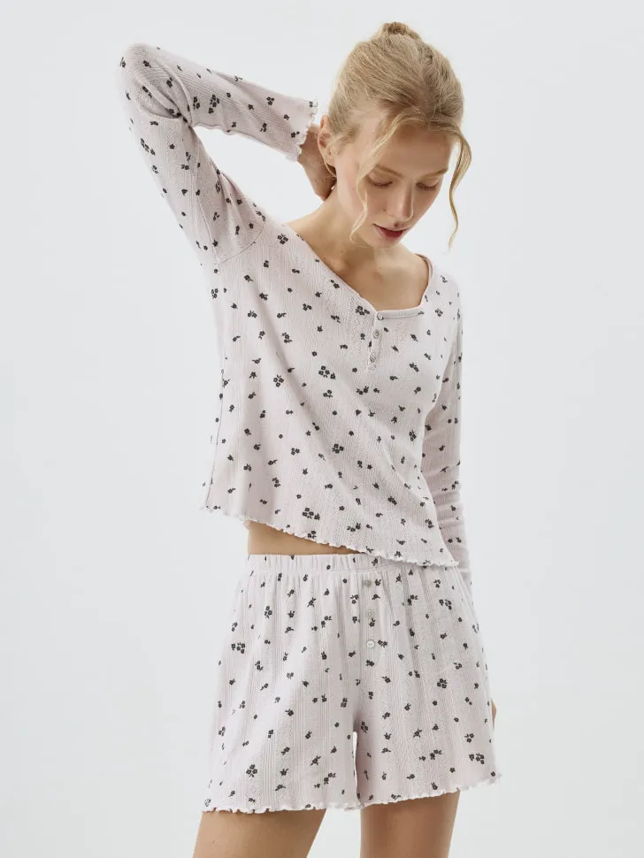 Особое внимание стоит уделить оригинальному принту, который придает изделию игривый и женственный вид. Он легко сочетается с любыми домашними брюками, шортами или леггинсами, создавая гармоничный и завершенный образ. Независимо от того, проводите ли вы время за чтением книги, смотрите любимый фильм или наслаждаетесь утренним кофе, этот лонгслив обеспечит вам максимальное удобство и позволит выглядеть стильно даже дома. Почувствуйте себя прекрасно и расслабленно каждый день с нашим домашним лонгсливом!