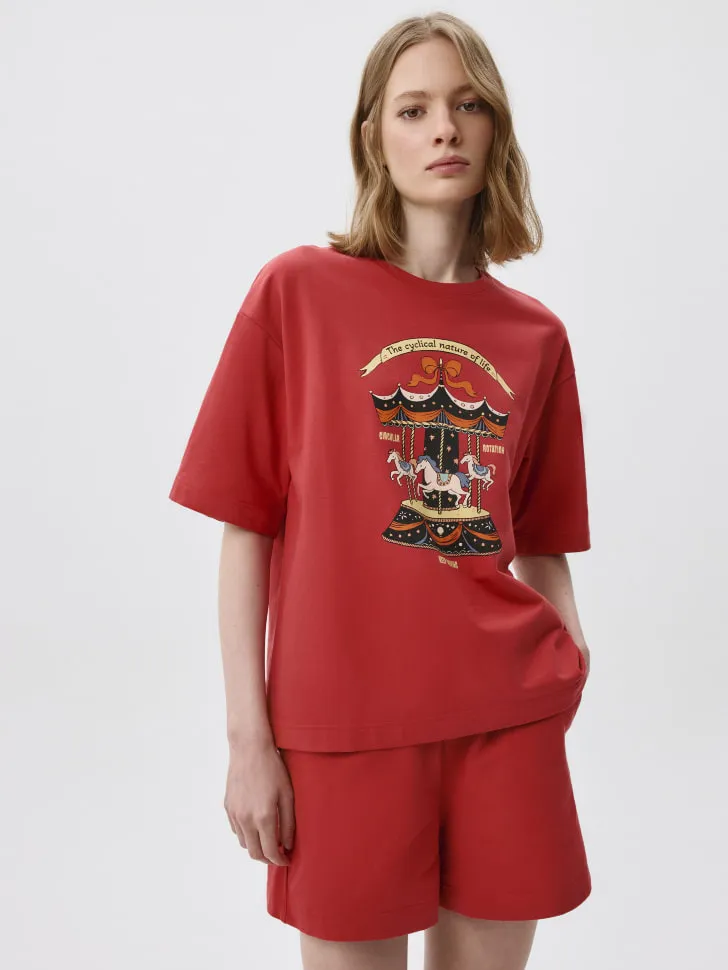 Пижамная футболка оверсайз с принтом, арт. 5705