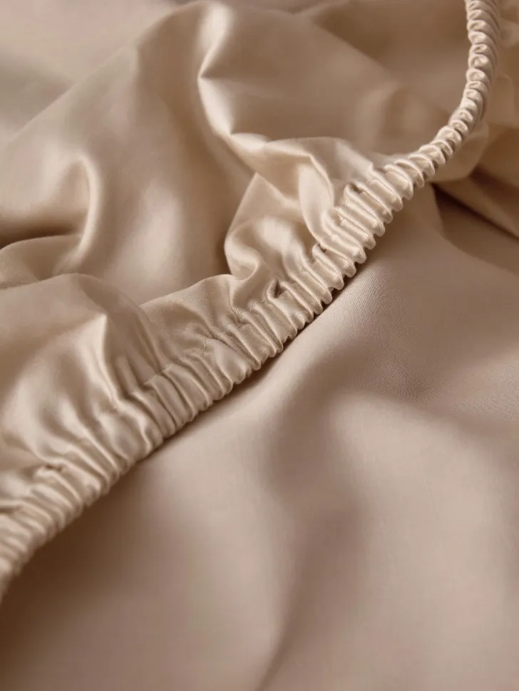 Простыня на резинке из сатина, бежевый, арт. satn90x200