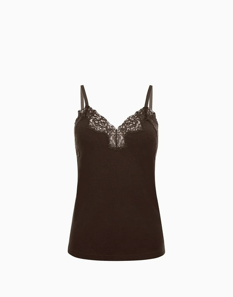 Изящное кружево по линии декольте придает топу особую женственность и шарм, делая его идеальным выбором как для домашнего уюта, так и для создания стильных повседневных образов. Вы можете носить его как самостоятельный элемент или комбинировать с другой одеждой, например, под жакет или кардиган.
