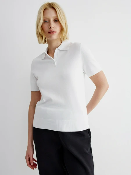 Модель имеет классический крой с коротким рукавом и элегантным воротником-поло, что придает ей аккуратный и актуальный вид. Белый цвет легко интегрируется в любую палитру, позволяя экспериментировать с аксессуарами и другими элементами одежды. Подчеркните свою индивидуальность и оставайтесь в тренде с SELA!
