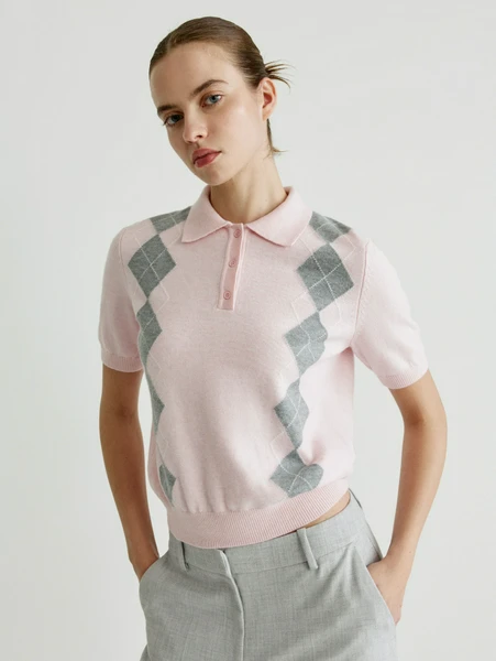 Джемперы, свитеры и кардиганыПочувствуйте истинное удовольствие от ношения с элегантным джемпером-поло от SELA! 💖 Этот изысканный джемпер создан для женщин, ценящих комфорт, стиль и натуральные материалы. Выполненный из премиальной смеси шелка и шерсти, он не только невероятно приятен к телу, но и обеспечивает оптимальную терморегуляцию. Его уникальный светло-розовый оттенок, дополненный классическим серым узором в ромб, привнесет нотку аристократизма в любой ваш образ.