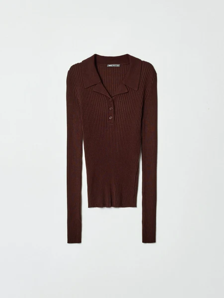 Джемпер-поло Sela в рубчик, коричневый, арт. 34645