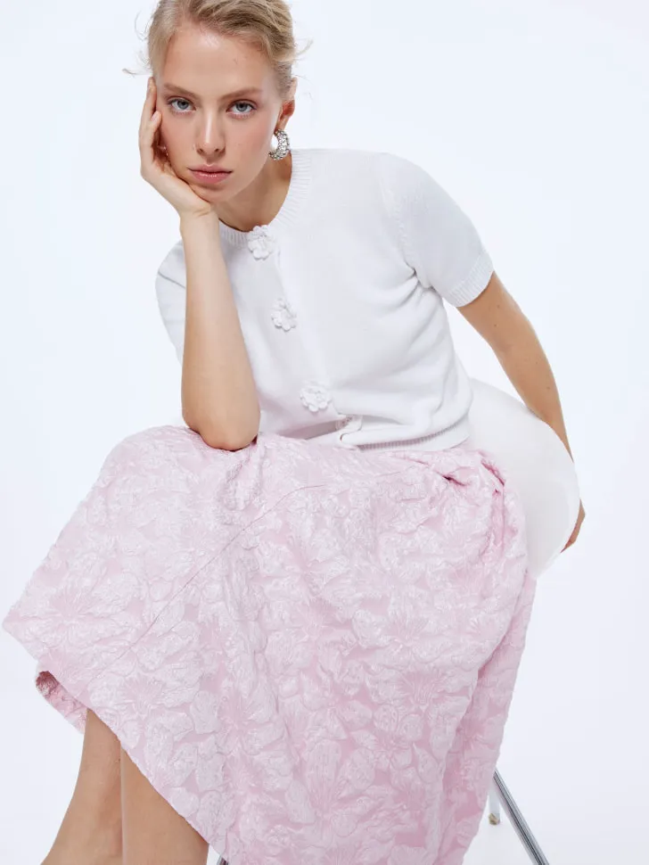 Универсальный белый цвет легко впишется в ваш гардероб, позволяя экспериментировать с различными комбинациями. Вы можете носить его с классическими брюками для офисного стиля, легкими юбками для романтичного образа или с джинсами для повседневных выходов. Декоративные пуговицы на планке придают этой модели особый шарм, делая её более изысканной. Создайте свой уникальный образ с этим versatile джемпером, который подчеркнет вашу индивидуальность и чувство стиля. Он станет незаменимой базой вашего гардероба на весну и лето.