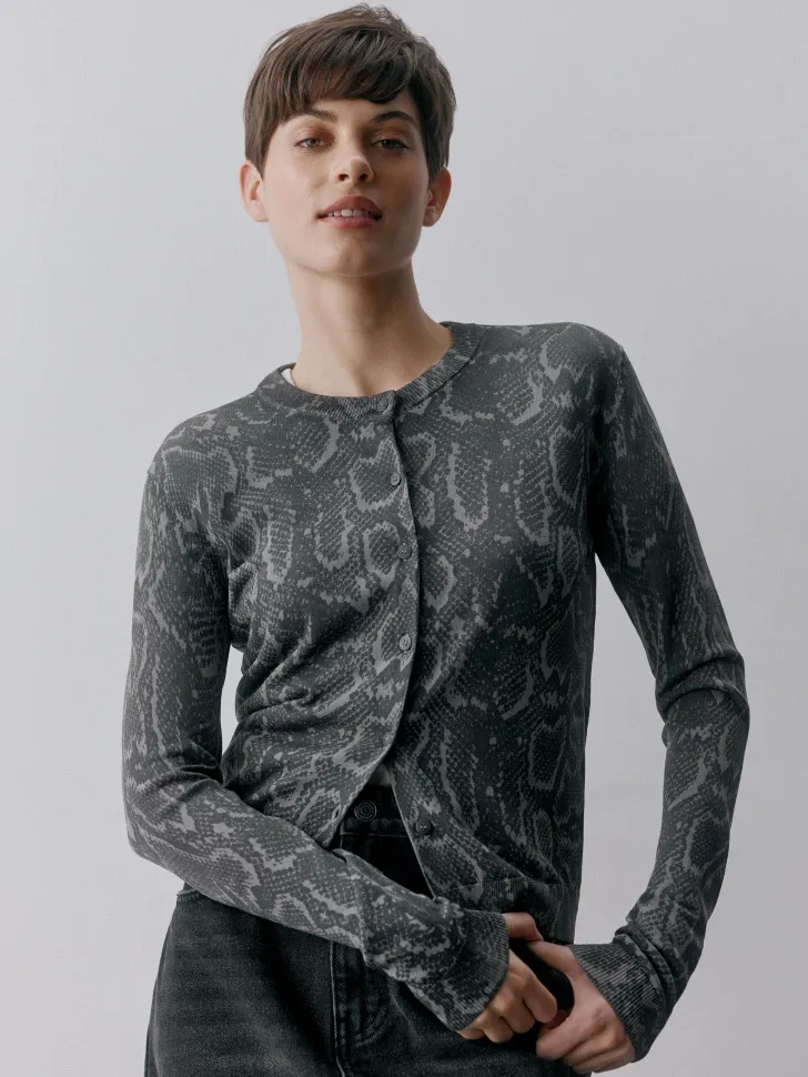 Особое внимание привлекает завораживающий анималистичный принт, который придает кардигану современный и смелый акцент. Этот принт не только выглядит стильно, но и позволяет вам выразить свою уверенность и харизму. Благодаря своей универсальности, кардиган легко комбинируется с различными элементами одежды – от строгих брюк до легких платьев, создавая бесконечное множество образов. Лиоцелл известен своей долговечностью и устойчивостью к износу, а шелк добавляет изделию благородный блеск и ощущение прикосновения к роскоши. Это не просто модный аксессуар, это инвестиция в ваш гардероб, которая подарит вам комфорт, стиль и уверенность на долгие годы. Почувствуйте себя по-настоящему особенной, выбрав этот уникальный кардиган!