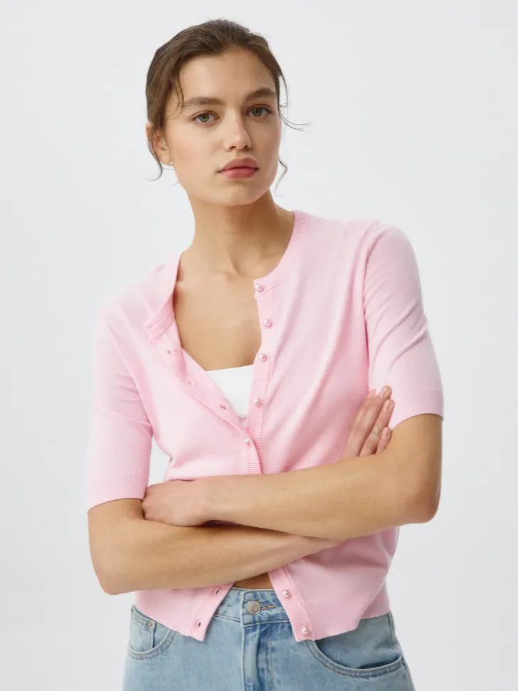 Наш кардиган с короткими рукавами — это воплощение практичности и моды. Его лаконичный дизайн позволяет легко комбинировать его с джинсами для повседневного стиля, с брюками для офиса или с юбкой для вечернего выхода. Ощутите абсолютную свободу движений и уверенность в каждом шаге. Это не просто одежда, это инвестиция в ваш комфорт и безупречный стиль на каждый день!
