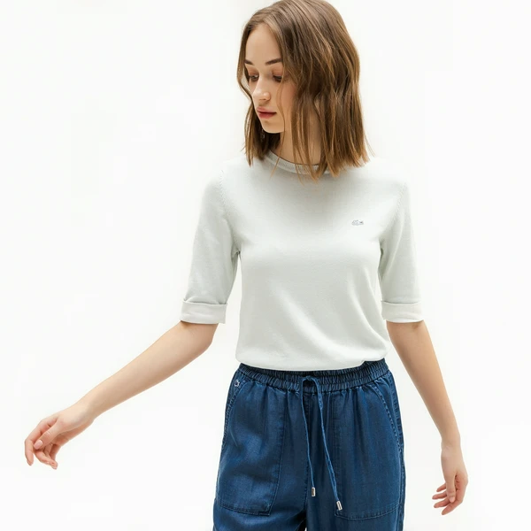 Джемперы, свитеры и кардиганыОткройте для себя идеальное сочетание комфорта и элегантности с женским свитером Lacoste. Созданный из премиальной смеси высококачественного хлопка и нежного шёлка, этот свитер обещает непередаваемое ощущение мягкости и легкости на вашей коже. Его дышащие свойства и приятная к телу ткань делают его незаменимым элементом гардероба для любого сезона.