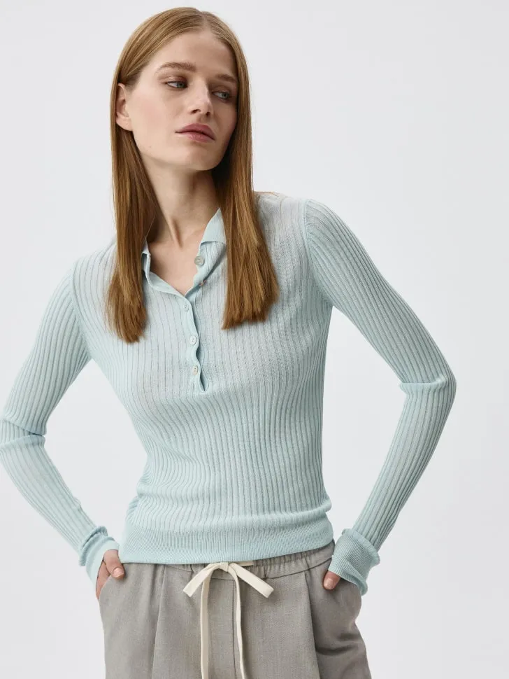Вязаное поло в рубчик, светло-голубой, арт. Не указан