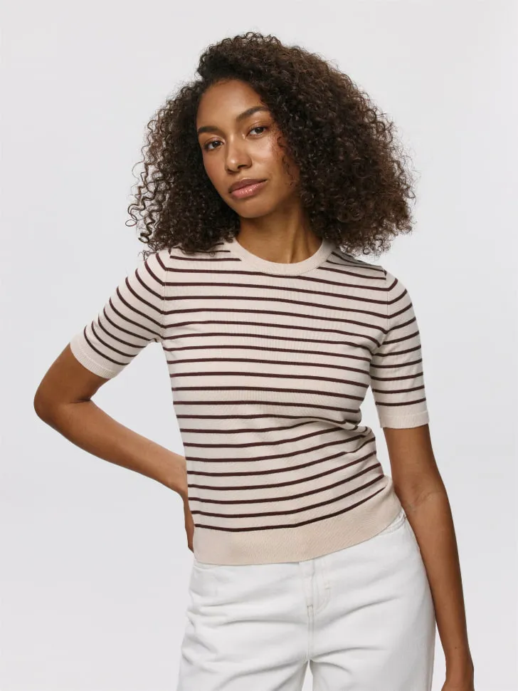 Представляем вам идеальное сочетание комфорта и стиля – наш вязаный джемпер с коротким рукавом! ☀️ Это универсальное изделие станет незаменимой частью вашего летнего гардероба, предлагая легкость и элегантность в одном флаконе. Созданный из высококачественной, дышащей пряжи, он обеспечивает максимальный комфорт даже в самые теплые дни, позволяя вашей коже свободно дышать. Его утонченный дизайн прекрасно дополняет как кэжуал, так и более официальные образы: носите его с любимыми джинсами, легкими юбками или строгими брюками.